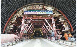 为应对复杂的开凿环境,施工方想了很多办法,如把石渣碾碎后铺设路基,用碾碎的沙石代替河沙配置混凝土,通过“多臂凿岩机”和“湿喷械手”等设备进洞,减轻对山体植被的破坏……
