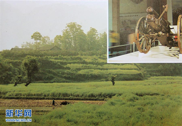拼版照片:桃子溪战斗旧址;右上图的山炮为此次战斗缴获,现存于中国人民革命军事博物馆。新华社发(资料照片)