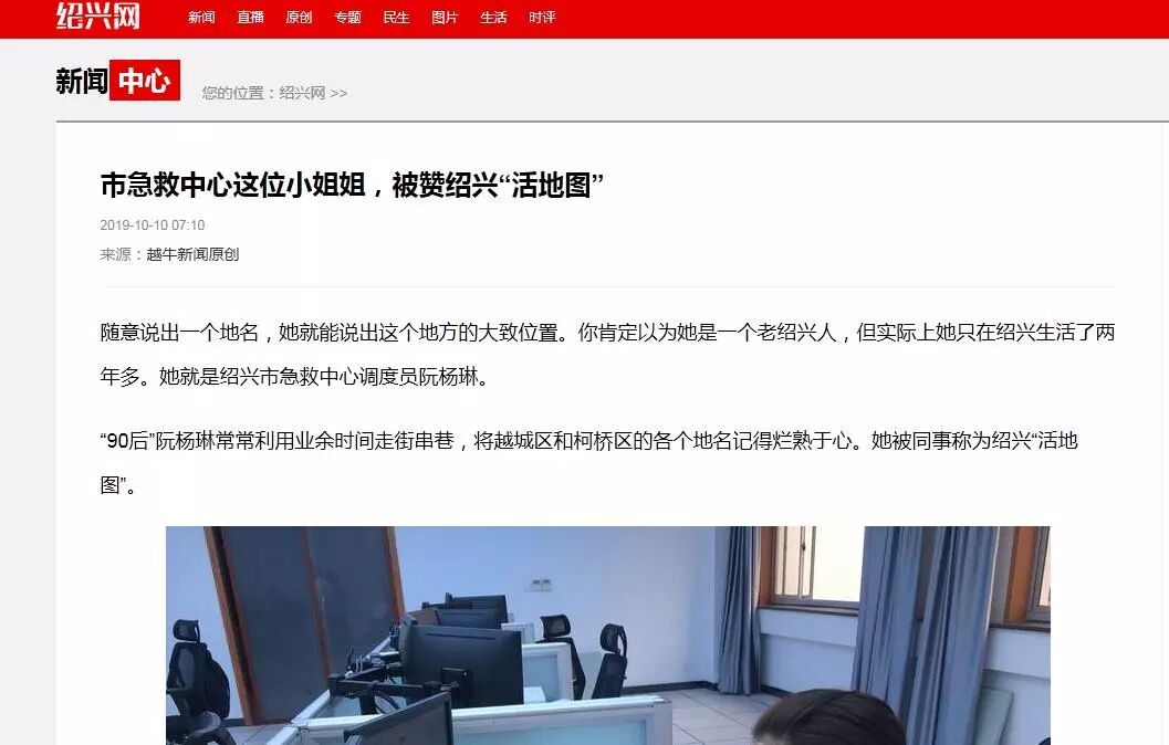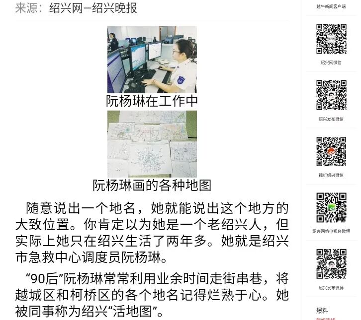 随意说出一个地名,她就能说出这个地方的大致位置。你肯定以为她是一个老绍兴人,但实际上她只在绍兴生活了两年多。她就是绍兴市急救中心调度员阮杨琳。