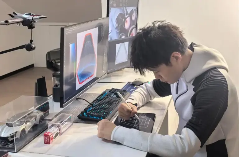 我叫马思然,本硕毕业于清华大学,目前就职于中国北方车辆研究所。我自幼就喜欢汽车、飞机、坦克大炮、火箭乃至航天飞机这样代表人类尖端科工实力的工业产品,因此听说能以载人航天飞行任务标识设计的方式为国家航天事业贡献自己的力量,我感受到了自己画笔下充斥的能量。