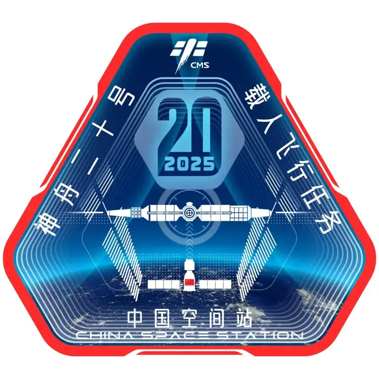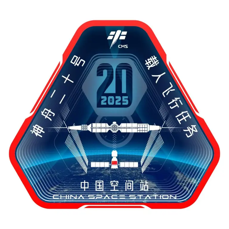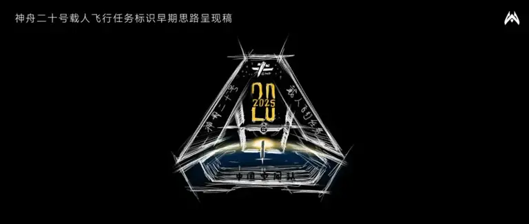 神舟二十号载人飞行任务标识,融合传统与创新,以稳定三角形为基,象征航天人在经验基础上攀登新高峰。