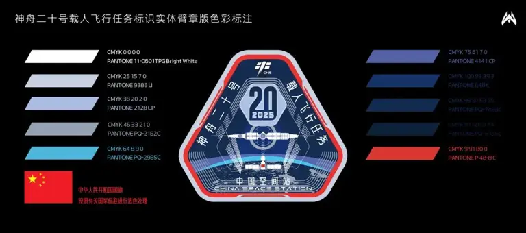 神舟二十号载人飞行任务标识实体臂章版色彩标注