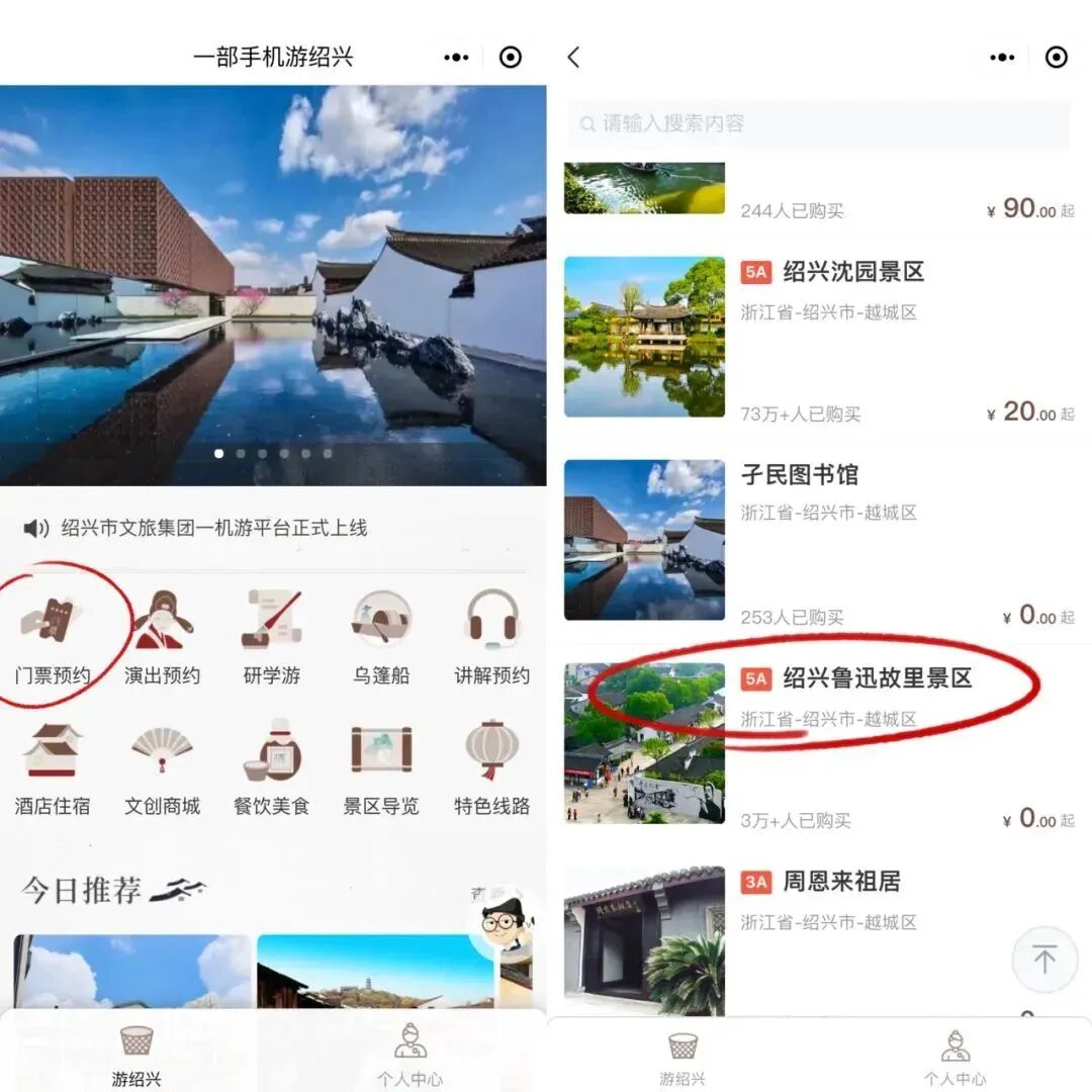 鲁迅故里景区实行预约参观,请您关注“绍兴市文旅集团”或“绍兴鲁迅纪念馆”微信公众号,提前在网上预约,并在预约时段内,凭身份证、人脸识别进入各景点参观。若错过预约时间,请重新预约。每个手机号限预约5人。进入景点时,请您准备好本人身份证,以便顺利验证通行。