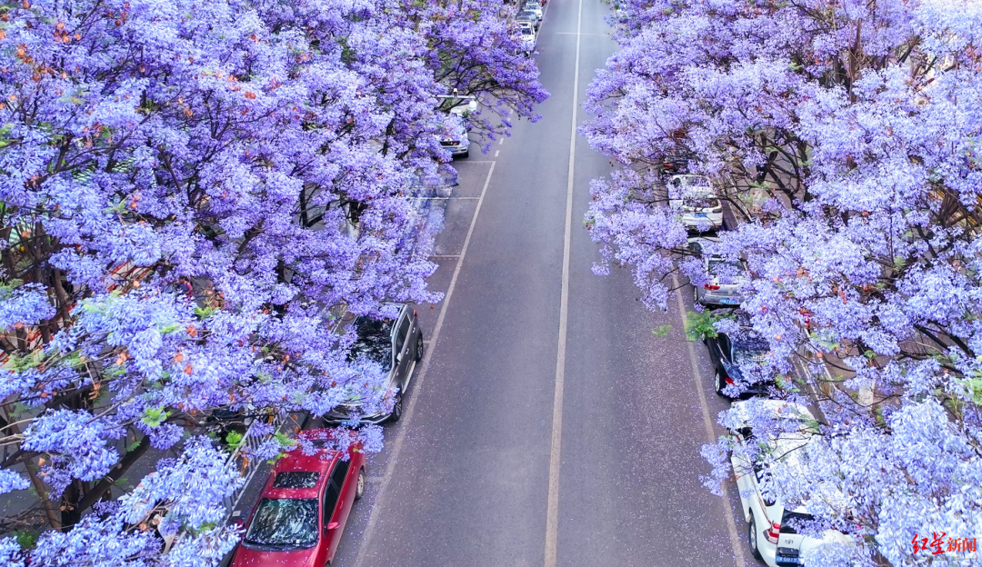 最近,四川西昌市城区的蓝花楹已经开始绽放,航天北路等多条街道成了“紫色花海”。记者采访了解到,今年受寒潮天气影响,西昌城区的蓝花楹花期推迟,最近一周开始陆续绽放。