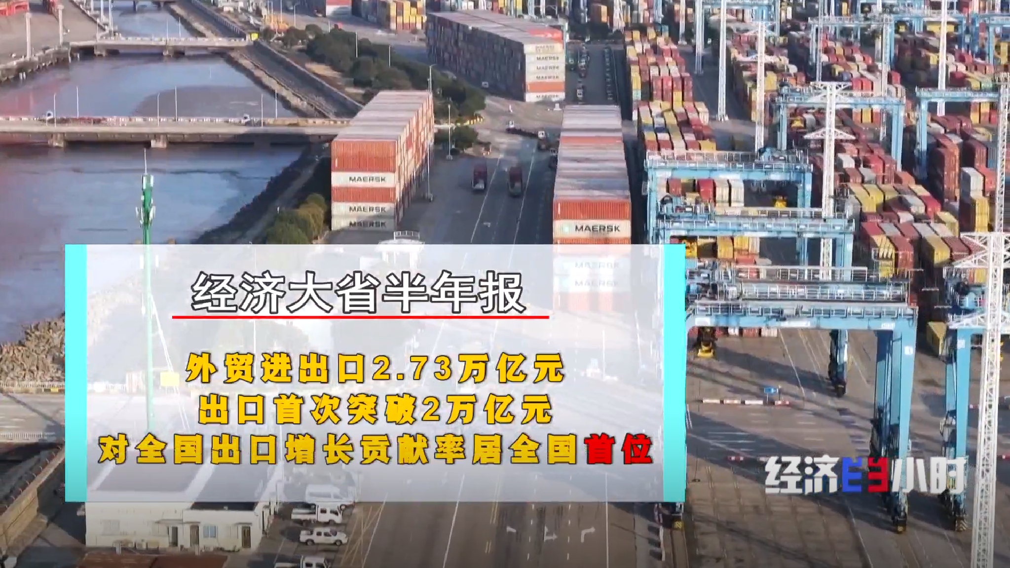 今年上半年,浙江省地区生产总值45004亿元,同比增长5.8%,比全国高出0.5个百分点,增速领跑全国。1月至6月,浙江省货物贸易进出口2.73万亿元,同比增长6.6%;其中,出口首次突破两万亿元,达到2.07万亿元,增长9.1%,规模占全国的15.9%,稳居全国第二;进口6592.7亿元。浙江对全国出口增长贡献率达19.8%,居全国首位。