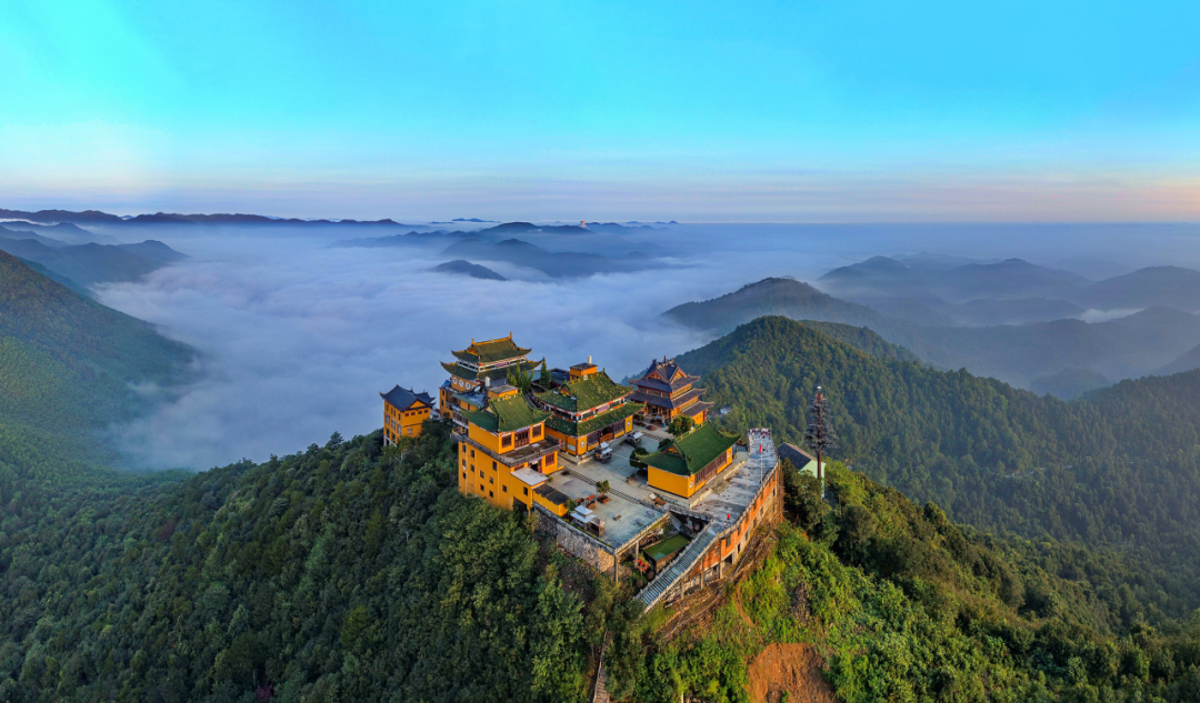 秋雾缭绕的山路上,古寺时隐时现,梵音若有若无。登临山尖,云海在脚下翻腾,尘世在远方隐去,让人顿悟“本来无一物”的禅机。