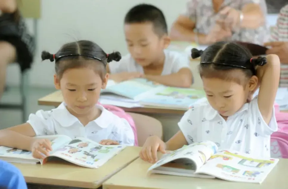 2013年8月31日,宋其真(右)、宋其优(左)姐妹小学入学报名(周晨阳摄)